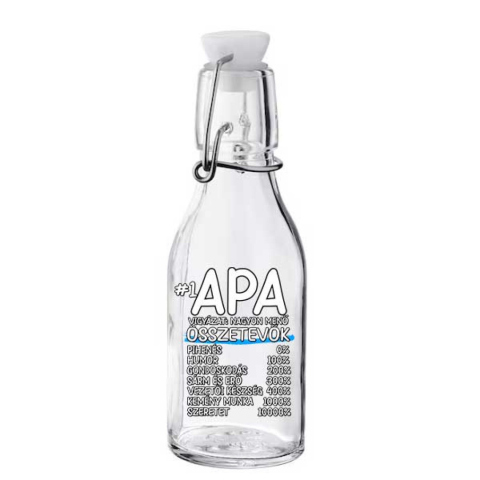 Test: üveg Tető: Polipropilén Kupak: szintetikus gumi Drót: rozsdamentes acél Mérete: 17 x 5,5 cm Űrtartalom: 150 ml