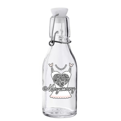 Test: üveg Tető: Polipropilén Kupak: szintetikus gumi Drót: rozsdamentes acél Mérete: 17 x 5,5 cm Űrtartalom: 150 ml