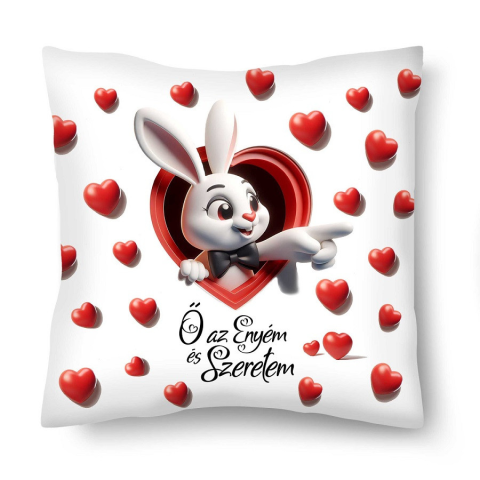 1 kép Kicsi díszpárna, Ő az enyém és szeretem, fiú nyuszi