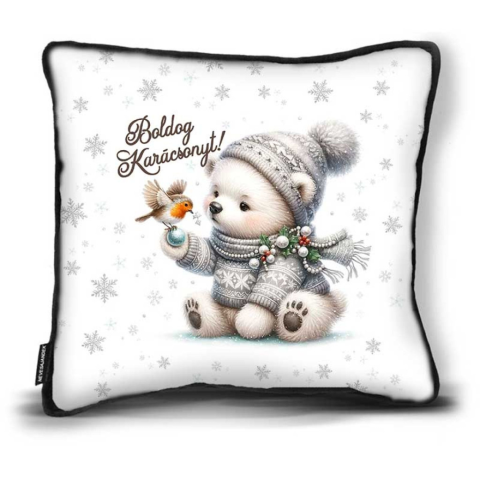 1 kép Kicsi karácsonyi díszpárna, Fehér maci madárkával