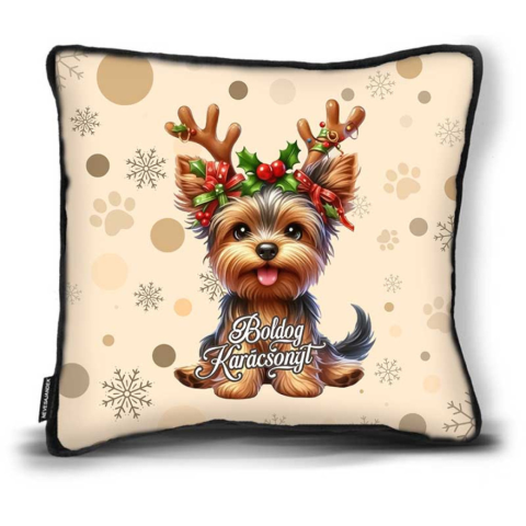 1 kép Kicsi karácsonyi díszpárna, Yorki kutya karácsonya