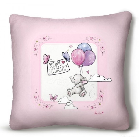 1 kép Kicsi plüss díszpárna, Boldog szülinapot, kis elefánt lufikkal, rózsaszín