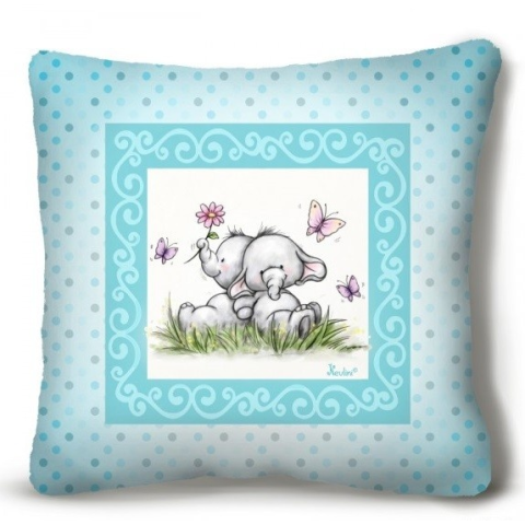 1 kép Kicsi plüss díszpárna, kis elefántok, kék háttér