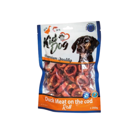Kid Dog jutalomfalat tőkehalas kacsahústekercs 250g jutalomfalat kutyáknak 1 kép