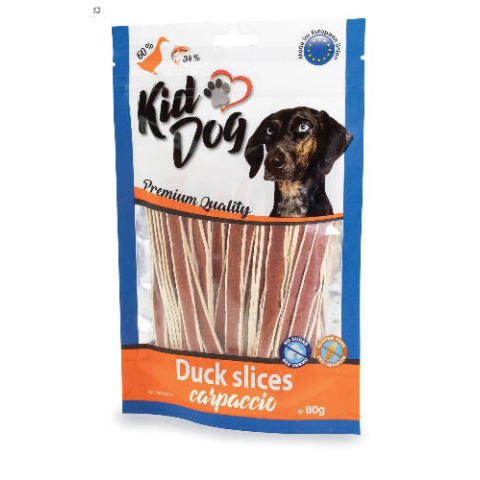 1 kép KidDog Duck slices carpaccio - jutalomfalat (kacsahús,tőkehal) kutyák részére (80g)