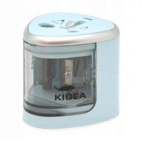 Kidea Állítható műanyag tartályos hegyező - kék egy kiváló minőségű elektromos ceruzahegyező, mely jelentősen megkönnyíti a ceruzák hegyének kifaragását. A két lyukú hegyezővel a vastagabb (9-12 mm) és vékonyabb (6-8 mm) ceruzák, zsírkréták is könnyed