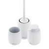 Tartalmazza a folyékony szappanadagolót, a fogkefés csészét és a WC-kefét. Fehér matt kerámia tartályok. Adagoló kapacitása 425 ml. Műanyag pumpa. Rozsdamentes acél kefefogantyú. "Soft touch" felület.
