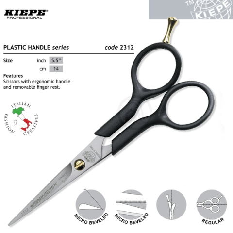Professzionális fodrász olló, tanulóknak vagy otthoni használatra is. Mikróélezésű, egyenes vágásokhoz ajánlott. A KIEPE 2312 - 6" ollója recézett élű, mikro-finom fogazatú, levehető ujjtartóval rendelkezik. A recézett élű olló, kifejezetten alkalmas pontos ás precíz munkához. Élhossza 6".