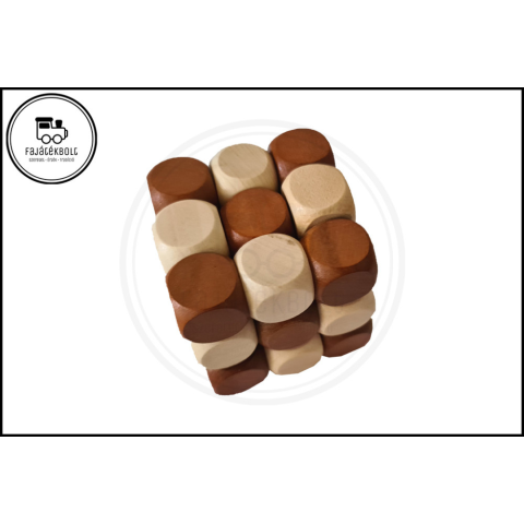 Fa kígyókocka A kocka elemei egyesével össze vannak fűzve. A játék célja, hogy a szinte egyenesre szétnyitott kockát összerakjuk. Anyaga: Fa Mérete: Nagy: 6,5 x 6,5 cm Tisztítása: Száraz törlőkendővel Ajánlott korosztály: 3 éves kortól