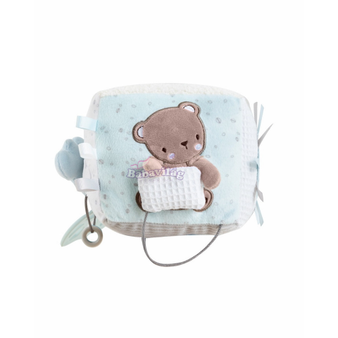 Kikkaboo készségfejlesztő játékkocka Bear With Me • Színes plüss kocka különféle tevékenységekhez • Különböző szerkezetekkel, hurkokkal, kötelekkel, tükörrel és bolyhos felületekkel serkenti a baba érzékszerveit és kíváncsiságát; • Játékos medvearc 3D