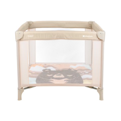 Kikkaboo utazójáróka Enjoy 2023 Maci bézs •Szögletes járóka, mely ideális a baba 36 hónapos koráig • Hálós ablakok a jobb szellõzés érdekében; • Cipzárral nyitható oldal; • Puha matracbetét; • Játékos minták; • Összecsukott helyzetben kompakt; •