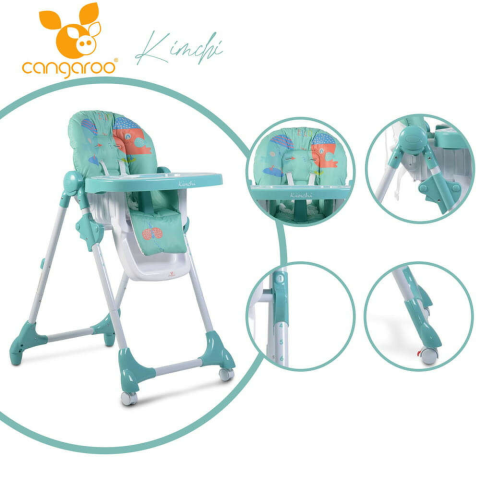 1 kép KIMCHI Etetőszék összecsukható 2 kerék, dönthető TÜRKIZ
