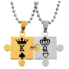 Acél King & Queen páros nyaklánc szerelmeseknek. Puzzle medálok arany és ezüst színben, a szerelem szimbólumával