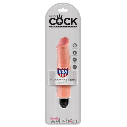 King Cock 7 inch Vibrating Stiffy Flesh- Realisztikus vibrátor Realisztikus kialakítású. pénisz formájú, testszövethez hasonló, bőrszerű tapintású anyagból készült, állítható rezgéserősségű vibrátoros motorral felszerelt, erezett