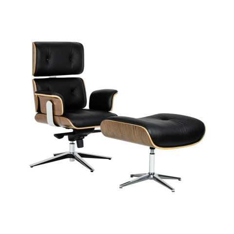 1 kép King Home Lounge Business Prémium Irodai Fotel Lábtartóval Diófa-Fekete Bőr