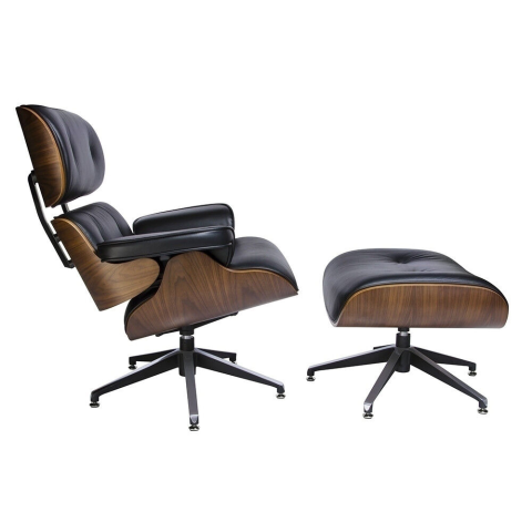 1 kép King Home Lounge Luxus Bőr Fotel Lábtartóval Diófa Fekete Forgatható