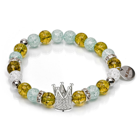 1 kép King of Life – Peridot és hegyikristály ásvány karkötő Korona dísszel, dobozban