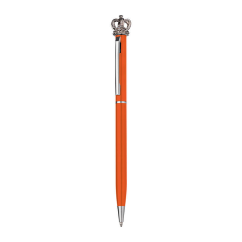Vékony, csavaros mechanizmussal ellátott fém golyóstoll, kék tollbetéttel. Koronával valamint gyémánt hatású kővel díszítve