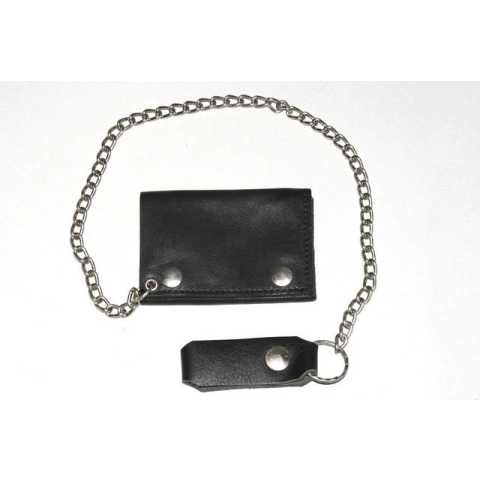 Fekete, valódi bőr pénztárca oldallánccal, bőrpánttal (mellyel övre patentozható). Mérete: 11 x 7,5 cm Kézzel készült, magyar termék.