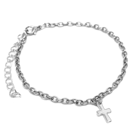 1 kép Kis nemesacél kereszt charmos rozsdamentes acél karkötő, ezüst színű