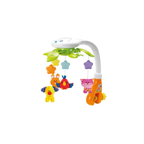 Korosztály: 0 - 3 év Winfun: Kiságyra szerelhető állatos zenélő forgóPörgő állatok, amik szórakoztatják és megnyugtatják a babát! Az Állatos zenélő kiságyforgó bébijáték egy műanyagból készült forgó, amit könnyen fel lehet erősíteni a babaágy rácsaira. A játékról cica, kutya, madár és nyuszi lóg, különféle textilekből. A játék kellemes dallamokkal ny