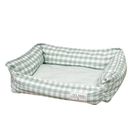 1 kép Kisállat fekhely, M méret, kockás világoszöld színben kutya / macska
