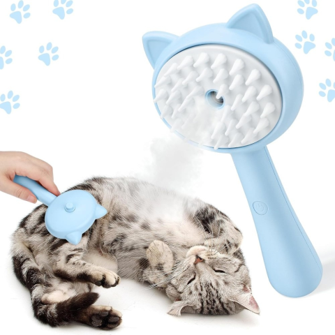Kisállat gőzös masszázskefe,öntisztító fésű - Kék