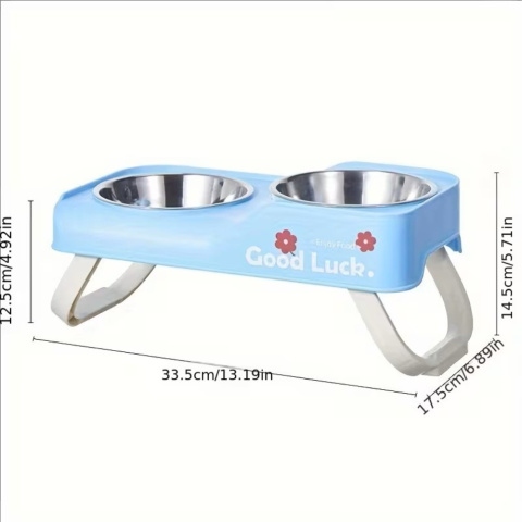 Kisállat rozsdamentes duplatál összecsukható állvánnyal - Kék kutyatál 1 kép