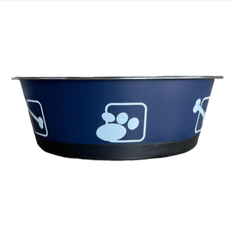 Kisállat rozsdamentes fém tál műanyag burkolattal-L - Sötétkék