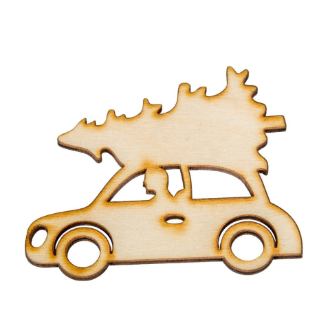 Kisautó fenyővel natúr fa 7cm dekorációs kellék árgrafikon