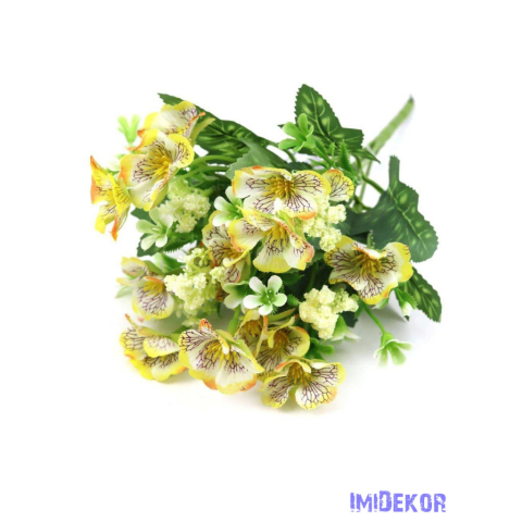 Kisfejű árvácska csokor 28cm - Sárga dekorációs kellék 1 kép