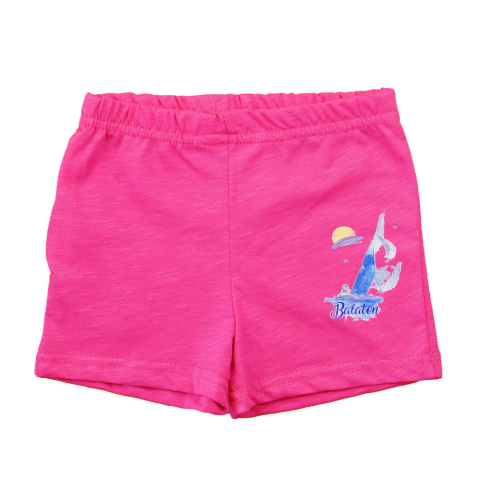 Kislány rövidnadrág Balaton mintával Egy igazán különleges, Balatonos mintával díszített rövidnadrág, mely minden kislány nyári kedvence lesz. A pink színű, 100% pamut anyagú rövidnadrág kényelmes viselet a forró nyári napokon, és tökéletes választás a s