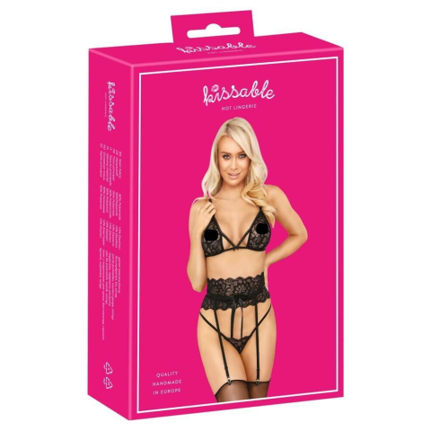 1 kép Kissable - hímzett derékpántos melltartó szett (fekete)