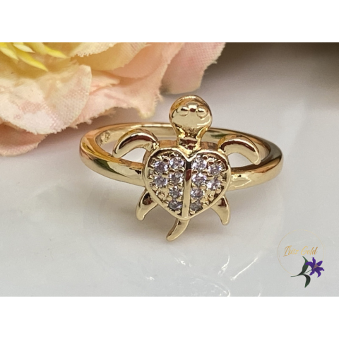 1 kép Kisteknőc gold antiallergén tűcirkóniás teknős alakú gyűrű 18K