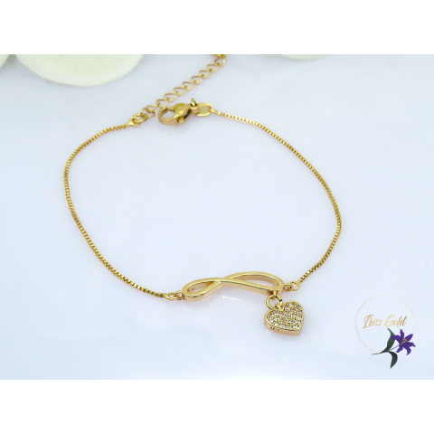 Antiallergén elegáns végtelen jeles karkötő kis szivecskével Szin: 18K Méret: 18cm + 3cm Medál: 20x0,6mm