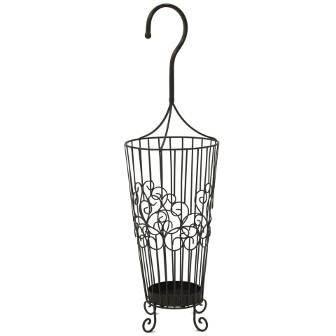 1 kép Klasszikus kampós fekete fém esernyőtartó állvány kacskaringós mintával 88x25,5x25,5cm
