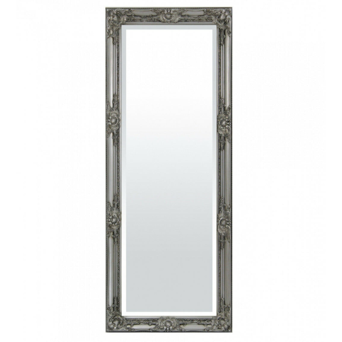 Klasszikus stílusú élcsiszolt fali tükör dúsan faragott ezüst blondel keretben 132x52x3cm bútor termékleírás