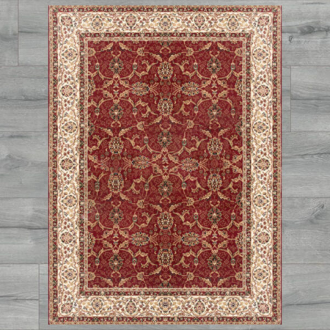 Klasszikus Szőnyeg 1861 piros 160x220cmA Klasszikus 1861 Piros szőnyeg eleganciát és időtálló stílust sugároz, klasszikus perzsa mintázata pedig bármely helyiségnek meghitt, luxus hangulatot kölcsönöz. A gazdag bordó alapszín és az arany–bézs díszítés harmonikus kombinációja tökéletes választás nappaliba, hálószobába vagy dolgozószobába, ahol a tradíció és az elegancia találkozik.A 100% polipropilén anyagból készült szőnyeg rendkívül tartós, formata