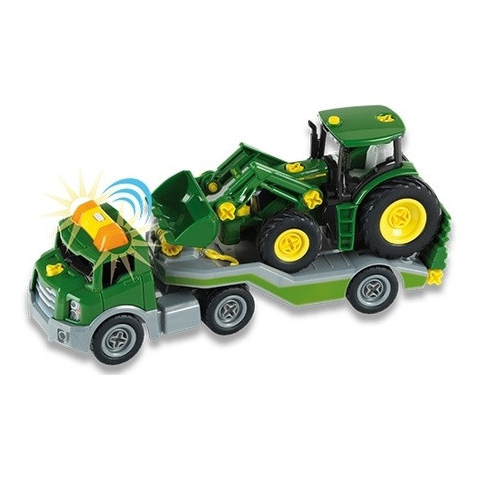 Klein Munkagép szállító tréler John Deere traktorral A Klein Munkagép szállító tréler John Deere traktorral könnyen összeszerelhető a hozzá tartozó csavarhúzóval A Klein Munkagép szállító tréler John Deere traktorral a vontató, a tréler és a traktor i