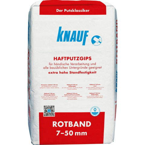 A Knauf Rotband tapadóvakolat egy EN 13279-1 szerinti, különösen stabil, egyrétegű, poralapú tűzvédelmi gipsz beltéri falak és mennyezetek kézi megmunkálásához. Különösen krémes és könnyen kezelhető. A tapadó gipszvakolat egy légáteresztő termék, amely a lakás egészséges klímáját segíti elő. IBO hitelesített.