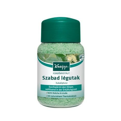 Kneipp Eukaliptus Szabad Légutak fürdőkristály 500 g. Az eukaliptusz tartalmának köszönhetően tisztítja a légutakat, átmelegíti a testet és egy jóleső fürdő készíthető vele. Könnyen oldódó kristályok természetes termálsóval, értékes éterikus eukaliptus