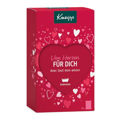 Kneipp Szívből Für Dich Fürdőkristályok 3x60g 50950 A szívből neked szánt Kneipp® ajándékkészlet három népszerű fürdőkristályunkat tartalmazza, különleges szívhez szóló üzenettel. A természetes illóolajokkal egyedülálló fürdőzési élményt biztosítanak,