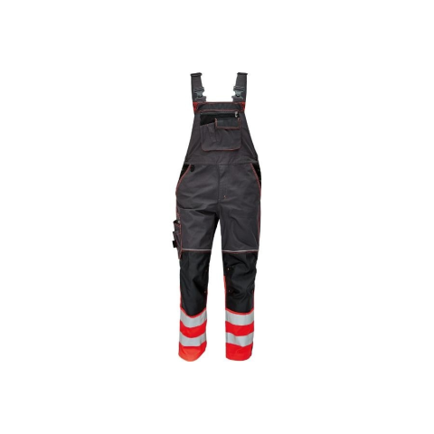 KNOXFIELD HV DW275 mellesnadrág piros 48 • kiváló minőségű férfi mellesnadrág HI-VIS anyaggal kombinálva a szárak alján, 2 fényvisszavető csíkkal • rugalmas pántok és derékrész • 6 funkcionális zseb, 600D Oxford megerősített térdrész a térdvédő behelye