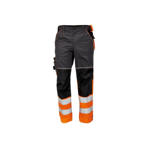 KNOXFIELD HV DW275 nadrág narancs 62 • férfi nadrág jólláthatósági kivitelben a szárak alján két fényvisszavető csíkkal • rugalmas derék • 2 oldalzseb • multifunkciós zseb a jobb lábon • D-gyűrű • hátul 2 zsebfedős zseb • kontrasztos kalapácstartó • me