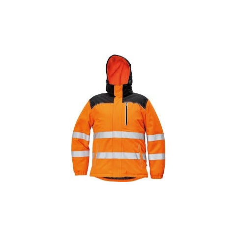 KNOXFIELD HV téli dzseki narancs XS • bélelt jólláthatósági férfi télikabát levehető kapucnival • meghosszabbított hát- és vállrésszel • cipzáras, kontrasztos színű mellzsebbel • 2 oldalzsebbel • és 2 zárható belső zsebbel • A kabát alja húzóz