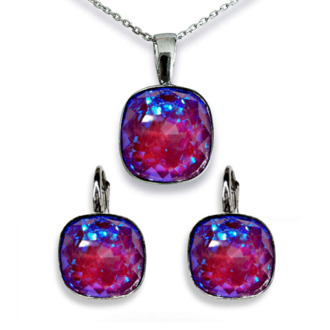 1 kép Kocka ékszerszett - ezüst - Swarovski kristályos - liláskék