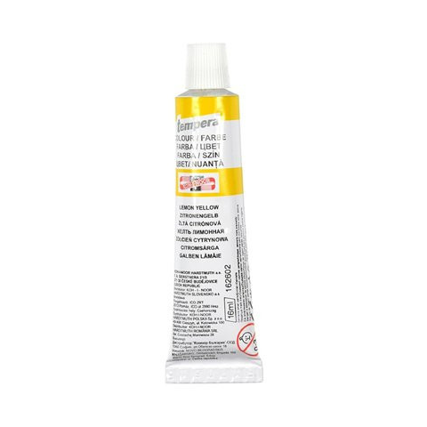 Tempera, KOH-I-NOOR, citromsárga - jó festhetőségi tulajdonságok és színintenzitás - 16 ml/tubus Gyártó/első EU forgalmazó elérhetősége: KOH-I-NOOR HARDTMUTH a.s. F. A. Gerstnera 21/3, 370 01 České Budějovice kht@koh-i-noor.cz www.koh-i-noor.cz