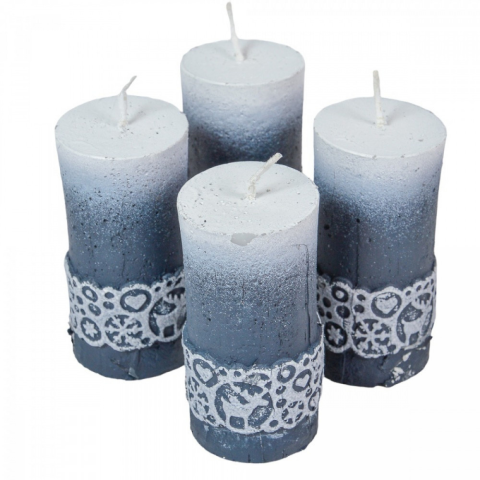 1 kép Kőhatású dekorcsíkos henger gyertya 45x100mm szürke