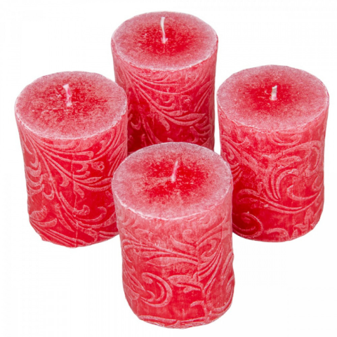 Kőhatású indás henger gyertya 55x80mm piros gyertya 1 kép