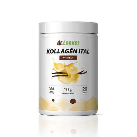 Dr. Lenkei Kollagén ital, vanília ízű étrend-kiegészítő italpor édesítőszerrel, 20 adag 100% TERMÉSZETES ÉDESÍTÉSSEL. GMO-MENTES. HOZZÁADOTT CUKROT NEM TARTALMAZ. FÜVET LEGELT SZARVASMARHÁBÓL. Kiváló minőségű hidrolizált marha kollagén por, amely GMO-ment